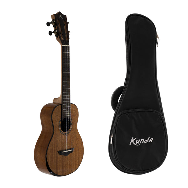 El Kunde Sun Eclipse 26″ EQ (tenor) és un ukelele fabricat amb fusta de caoba sòlida i pal de noguera, amb un so càlid i amb molt bona projecció de so. La nova saga Eclipse exhibeix elegant, molt bonic i amb un rotllo hippie gràcies al disseny de la roseta.